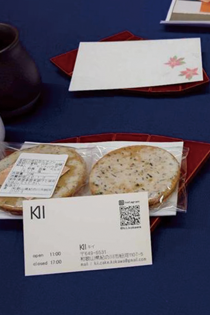 お茶と一緒に楽しむ今回のお菓子は、粉河の「KII キイ」さんに特別に作っていただいたオリジナルサブレ。