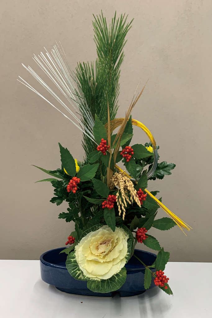 今回挑戦したのは、伝統的な中にもモダンな美しさが光る『たてるかたち』です。 まっすぐ天に向かって伸びる姿は、新年の清々しい空気感にぴったりですね。