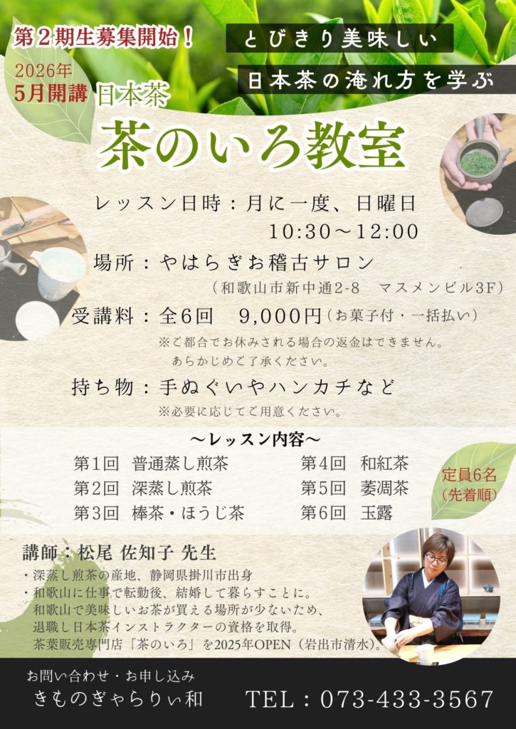 大変お待たせいたしました! おかげさまで第1期は満席・キャンセル待ちとなった「日本茶 茶のいろ教室」、待望の第2期生募集をスタートします。