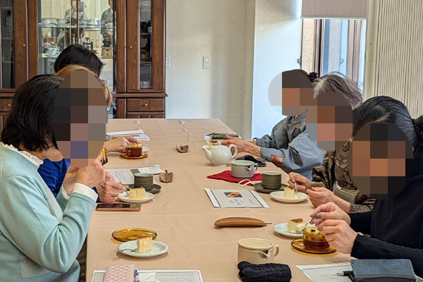 お楽しみの「本日のお菓子」は、Kiiさんの人気No.1チーズケーキ! 濃厚なチーズのコクが、和紅茶の繊細な香りと相性抜群で、生徒さんたちも思わず「おいしい〜」とニコニコ笑顔に。