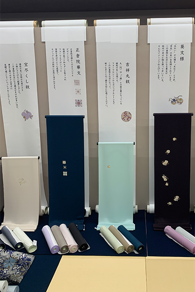 今回のメイン展示は、伝統紋様を現代のシーンに合わせて再構築した「ゆふづつ舎」のコレクション。