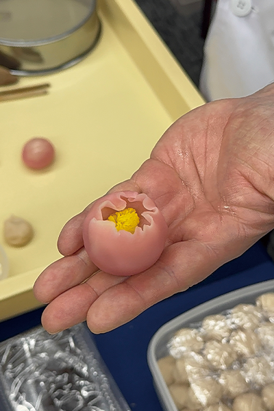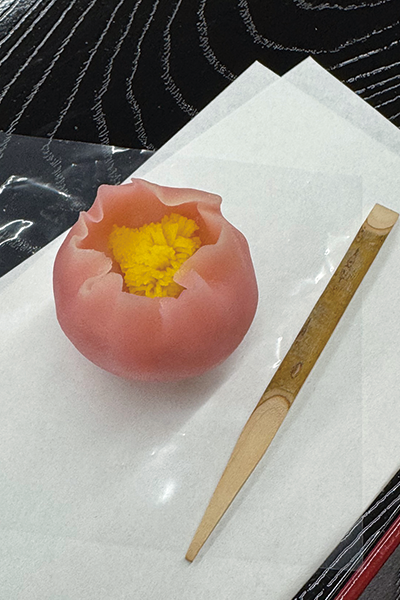 目の前で鮮やかに作り上げられる上生菓子は、まさに芸術品。 指先から魔法のように繊細な花が咲いていく様子に、思わず見惚れてしまうひとときでした。