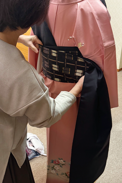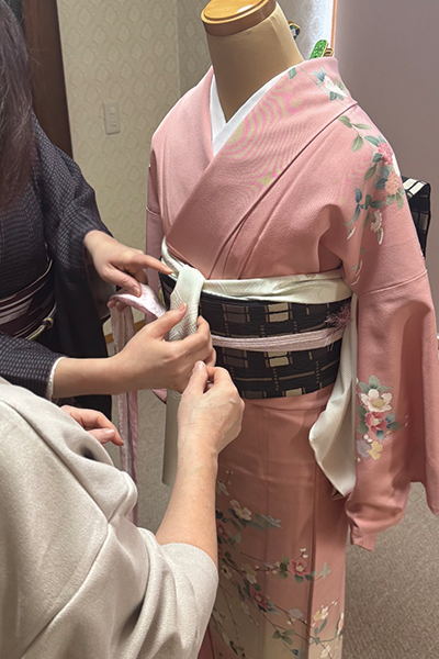 ひとつひとつの動作が本当に丁寧で、お着物までの着付けはもうほぼ完璧です♪ やはり「誰かのために」という想いがあると、指先まで心がこもるのですね。