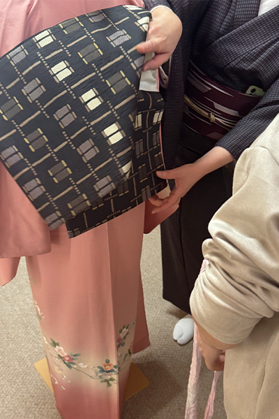 本日は、2月6日に行われた「他装(人に着せる)」のお稽古の様子をご紹介します。