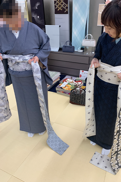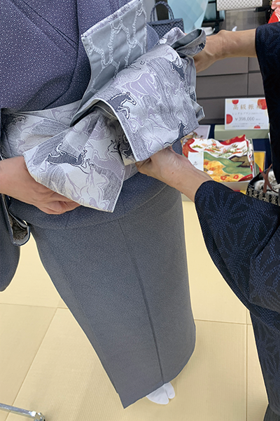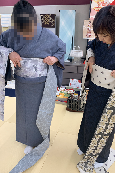 普段からお着物を楽しまれているお客様なので、コツを掴むのがとっても早い!
