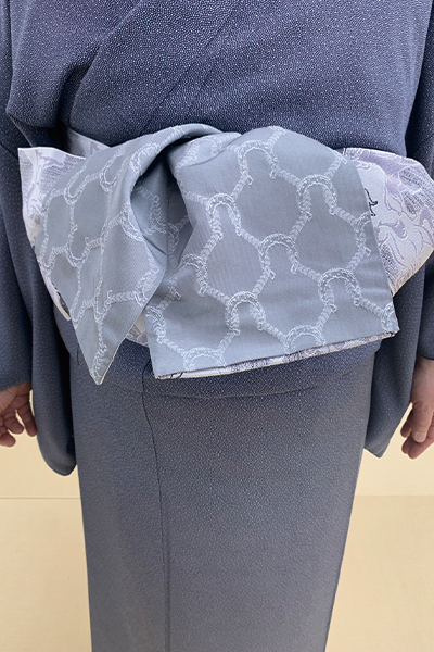 この帯、リバーシブルになっているので、裏表の出し方次第でガラリと雰囲気が変わるんです。