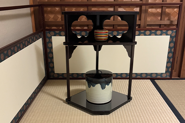 ※梅の別名「好文木」に由来する、梅の花の透かし彫りが美しいお棚です。