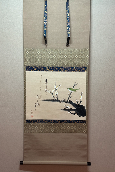 お道具やお菓子も、梅や新芽など、春の訪れを感じるしつらえでお迎えしました。