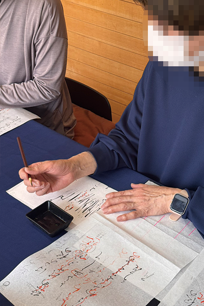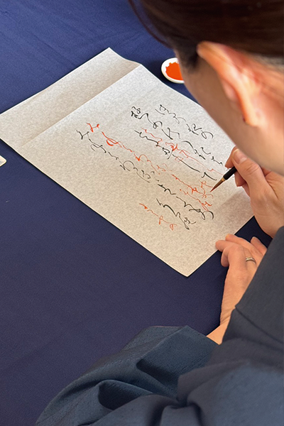 講師による添削(朱入れ)を通して、ご自身の書がさらに生き生きと変化していく過程は、この教室ならではの醍醐味です。