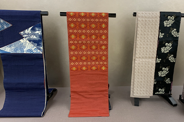 会場には、色とりどりの良質な着物や帯がずらりと並びました。