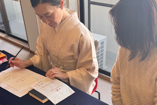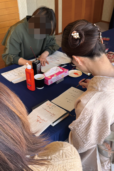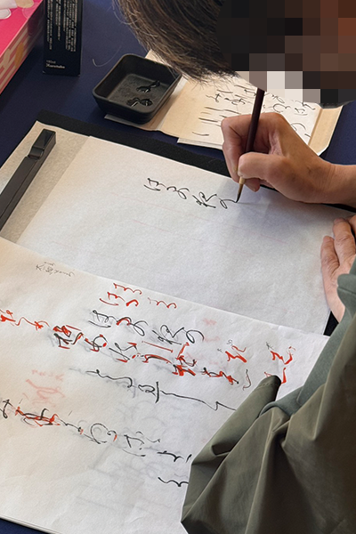 静かな空間の中で、皆様それぞれ筆を運ばれます。