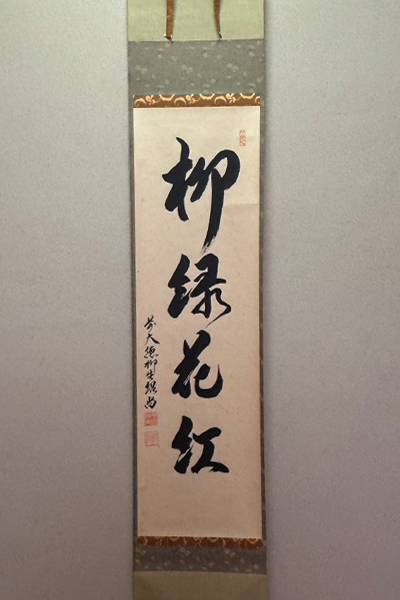 お軸: 柳緑花紅(やなぎはみどり はなはくれない)