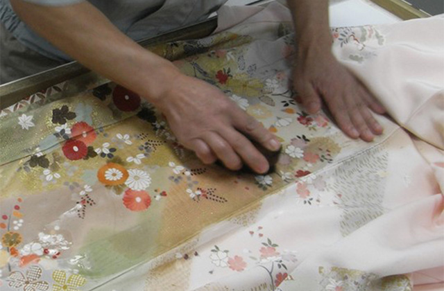1枚1枚、着物の状態を丁寧に確認し、「汗抜き」と「軽度の汚れ落とし」まで行います。