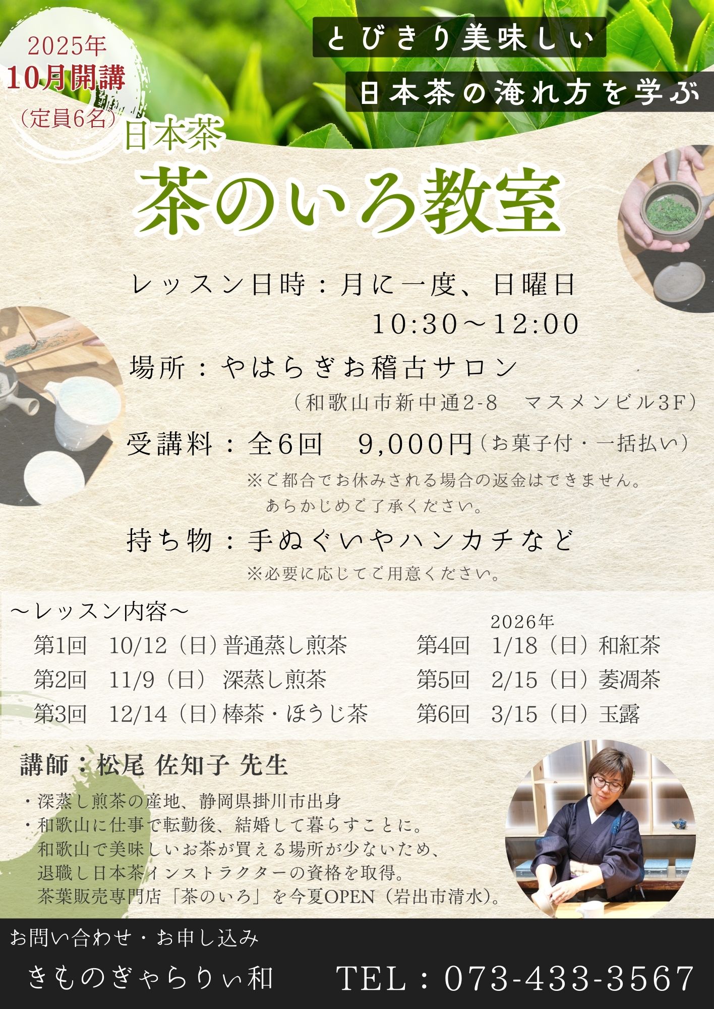 ◆日本茶「茶のいろ教室」:10月12日(日)開講(全6回 9,000円)
