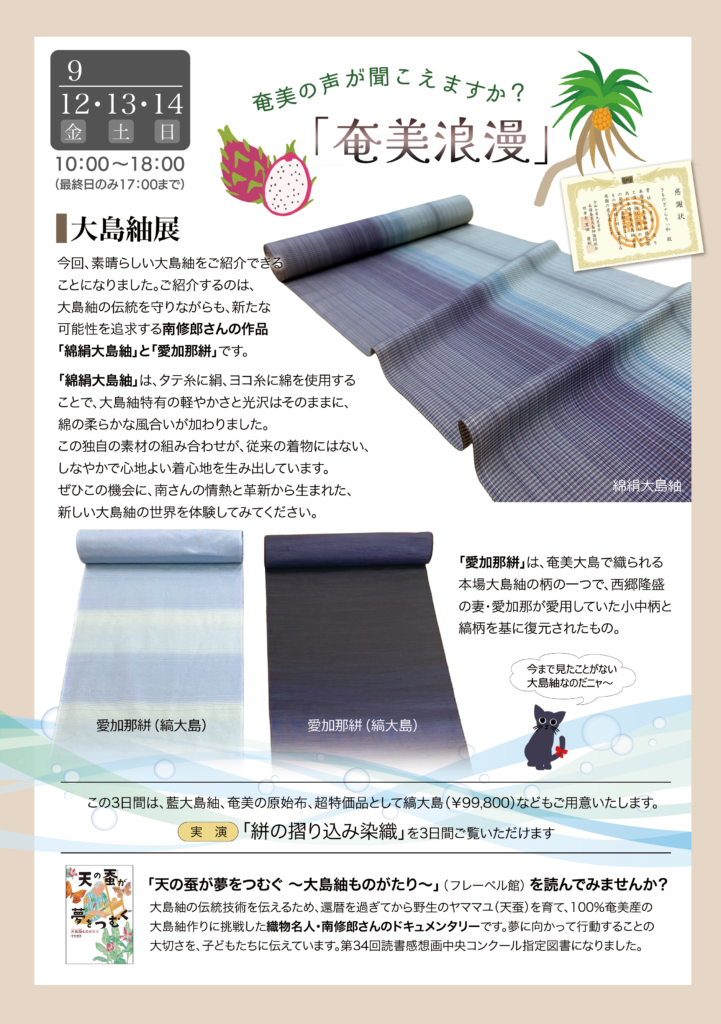 「奄美の声が聞こえますか?『奄美浪漫』大島紬展」開催のご案内